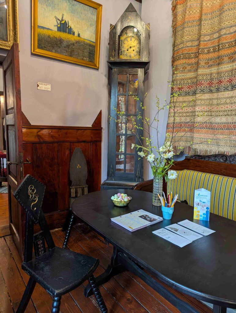 Pileti muuseumi ning pargi külastuseks saab lunastada majast.